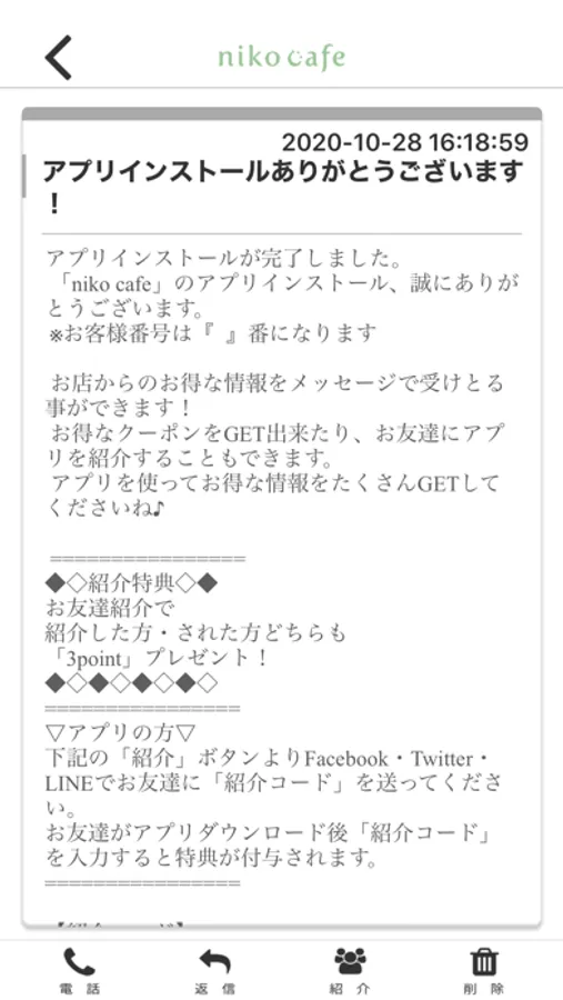 ニコ カフェのアプリをSNSを通じてお友達に紹介する事ができます。