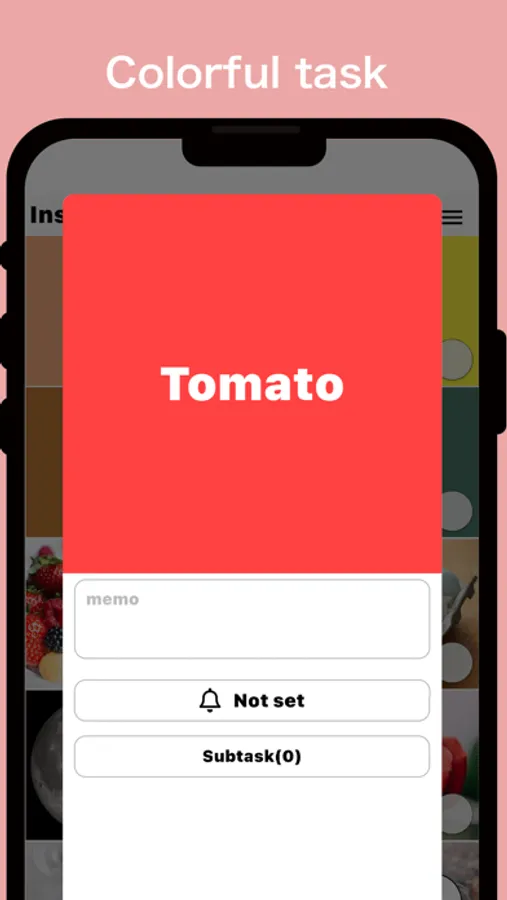 InstantTodo is a ToDo app that allows you to manage tasks in a colorful and personalized way, featuring a familiar thumbnail-style design reminiscent of social media platforms.
