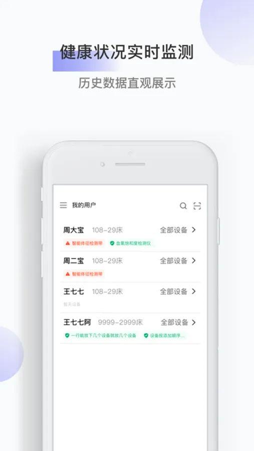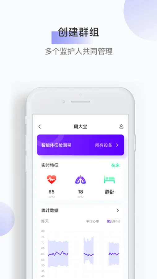 “颐康”是一款面向养老机构以及个体家庭的老人健康状态智能监测软件,通过连接配套的智能硬件设备实时监测被监护者的健康数据,包括呼吸、心率以及睡眠状态等;并能够生成直观的统计图表,方便用户通过分析老人不同时段的历史健康数据来全面了解老人的身体状况。
