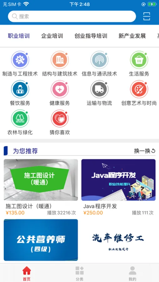 1. 特色培训:免费向社会公众提供职业技能网络培训服务,随时随地选课、看课,获取学时。