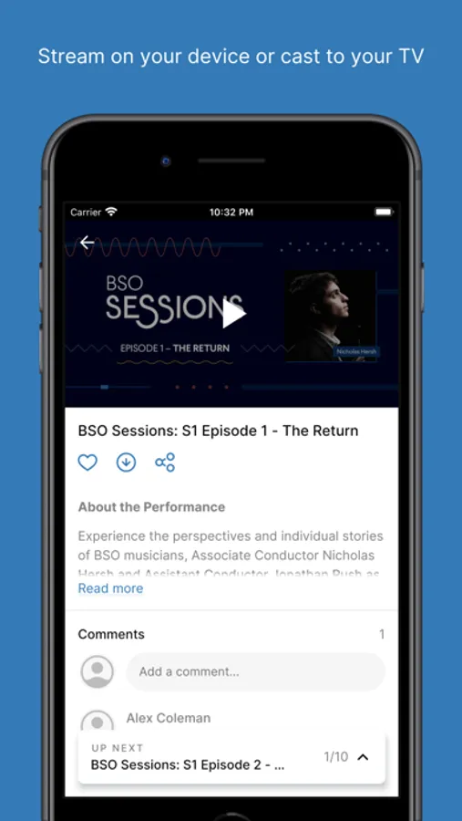 On BSO OffStage, the Baltimore Symphony Orchestra’s streaming platform, watch your orchestra from the comfort of your home or when you are on the go. Watch performances from the BSO's 2021-22 Season live-streamed from the Joseph Meyerhoff Symphony Hall, as well as episodes of BSO Sessions. Pairing powerful music with real stories, episodes of BSO Sessions include interviews with musicians, conductors, composers, and more. In addition, BSO OffStage includes series you have come to love and educational concert programming for teachers and families.