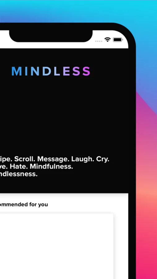 Addicted to social media? Feeling stressed? Apps make you feel alone? Well you're not alone, as many of the most popular apps have been designed this way, to be addictive. With Mindless, you can combat that addiction by mindfully scrolling, swiping, liking, etc. It's like the apps you love/hate, but without targeted ads, fake news, or any content really. After using Mindless, maybe, you can just put down your phone. Mindless is recommended as the #1 Phone Addiction and Mindfulness App, by people who are not experts at anything, from all around the world.