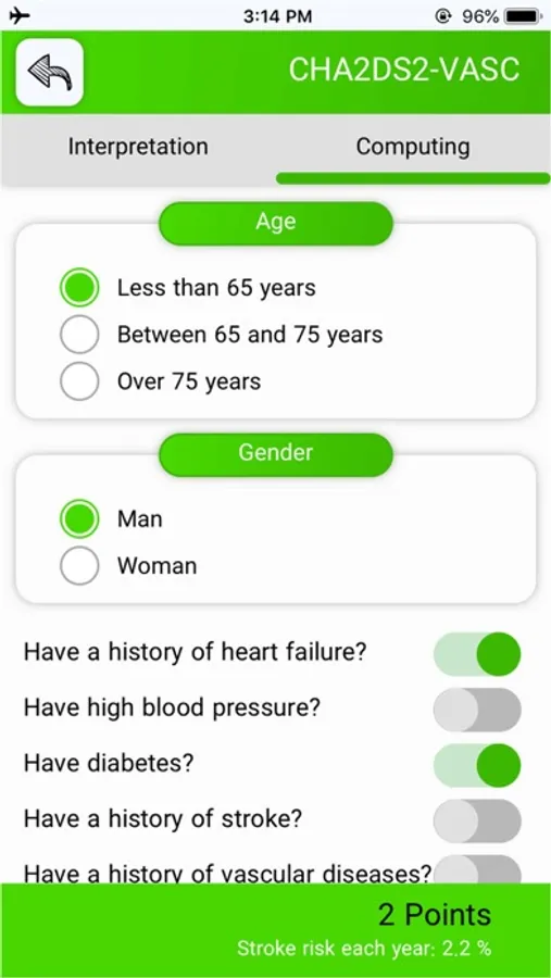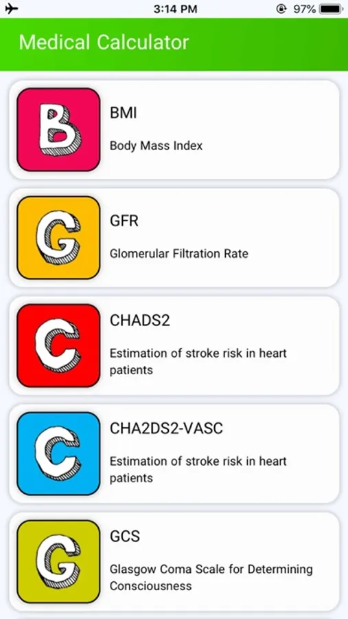 Body Mass Index , Glomerular Filtration Rate , Estimation of stroke risk in heart patients , Glasgow Coma Scale for Determining Consciousness , The amount of preservative fluid for serum therapy , Sodium excretion fraction to diagnose type of renal failure , Correction of calcium concentration according to albumin content , Estimation of bleeding rate in patients treated with anticoagulants , Mean arterial pressure based on systolic and diastolic pressure