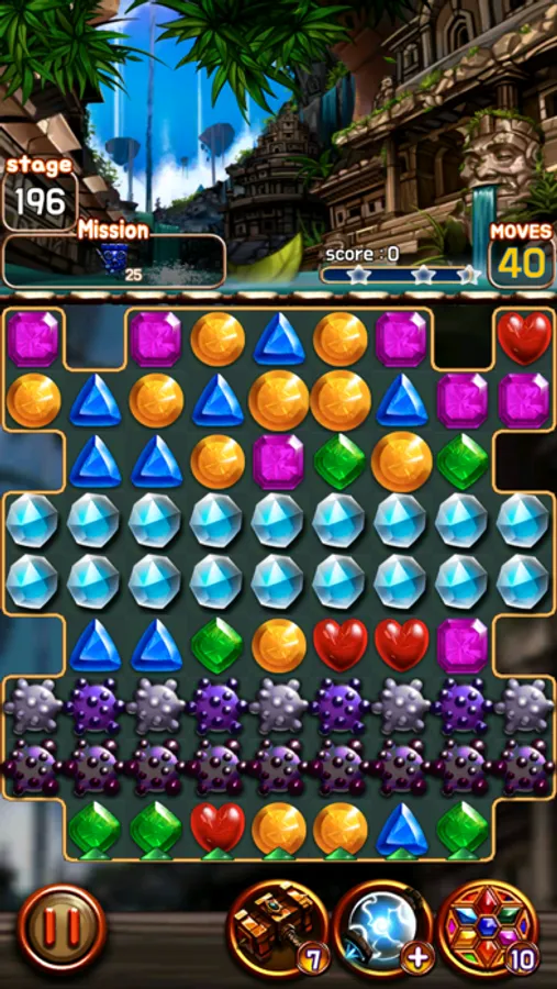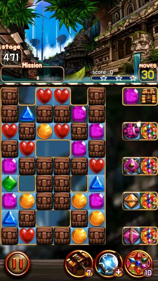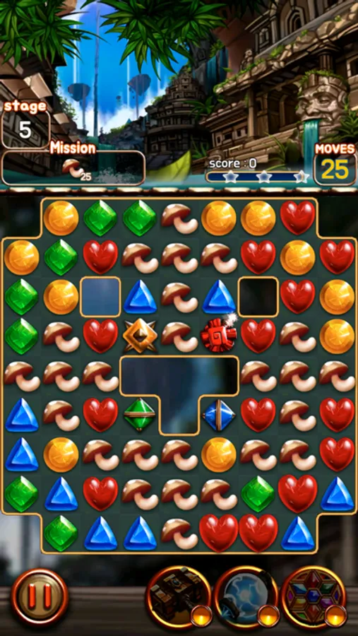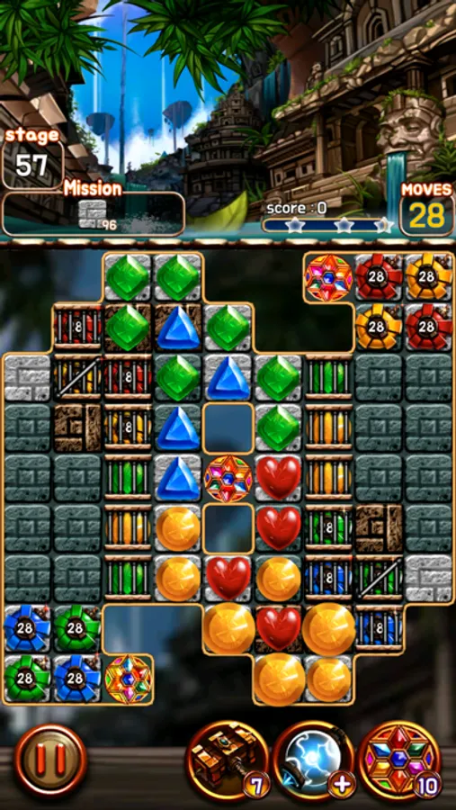 Jewel Ruins is a match 3 game that takes ancient civilization in the deep jungle. Match three jewels to blast them. Enjoy the bejeweled game with awesome high quality background. There are special items that have special abilities. Try out different special abilities and find out which one will help you solve the puzzle. New stages are updated monthly. Let's see who can beat all the puzzles.