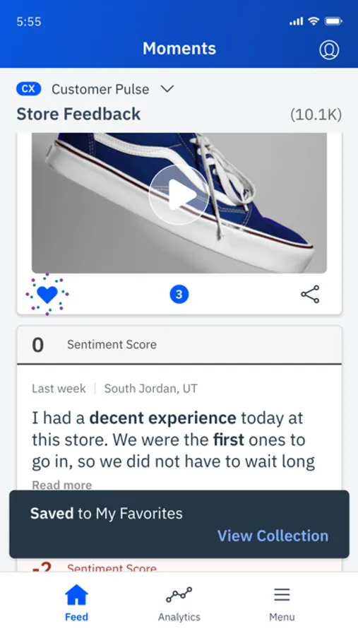 With Moments, users can monitor moments that matter most through a curated data feed with experiences relevant to them. Easily drill down by account or program and quickly access saved views and collections of customer feedback spanning multiple data sources.
