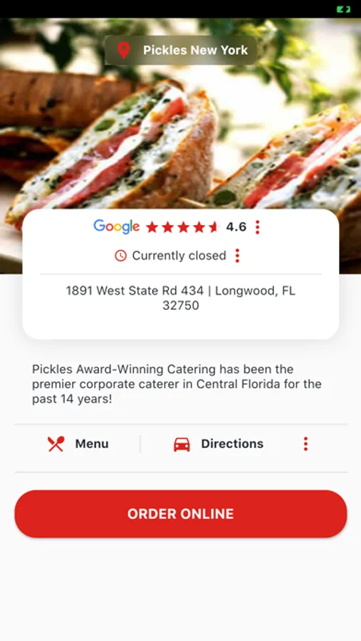 Pickles Deli app has many different functions. It contains an online ordering link, restaurant images, address and driving directions, store hours, menus, and many other great features.