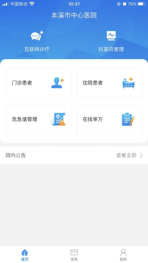 以患者为中心,基于本溪市中心医院现有信息平台,以“线下就诊,线上服务”为理念,创新医院的服务与流程,构建“智慧服务”模式的互联网医院。为医护人员提供患者管理、病历查询、安全用药审核和互联网诊疗等服务。
