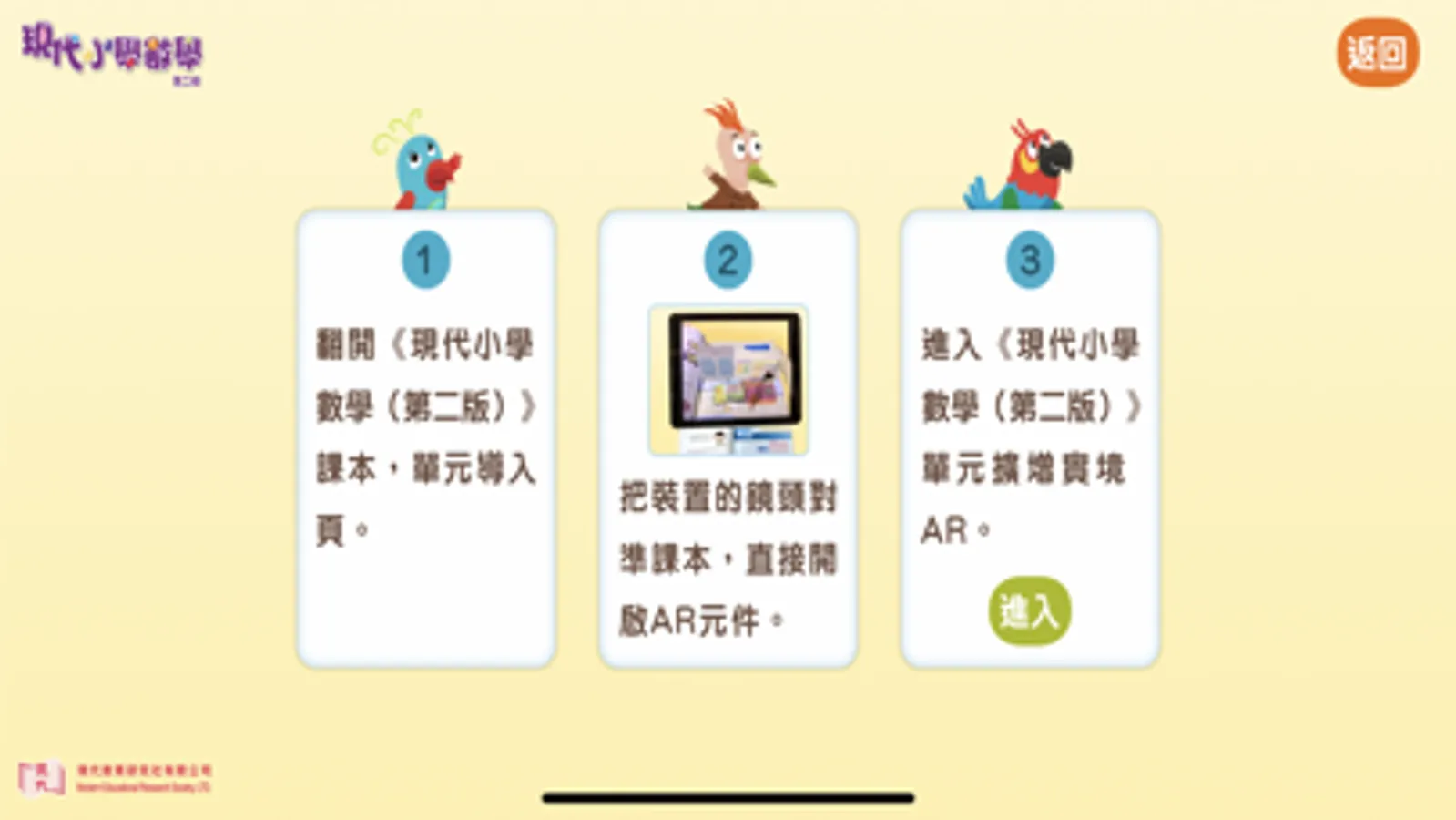 「現代小數 AR 2」App可在平板電腦或手機使用「現代教育研究社」所提供的現代小學數學AR學習資源。安裝本應用程式後,只需運用程式內的掃瞄器,對準每單元的引入頁,便可開啟生動有趣的學習內容。