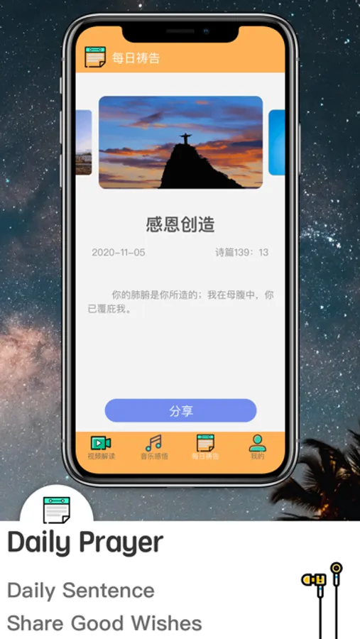 每日一句经典圣经名句,并添加精美的图片制作成圣经卡片分享给身边的朋友们。