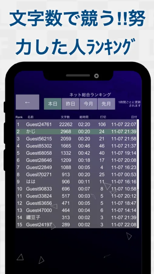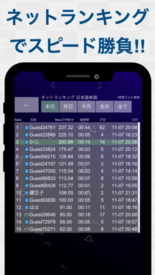 Speed results at the time of clear, is recorded on the terminal, it will be the ranking display.