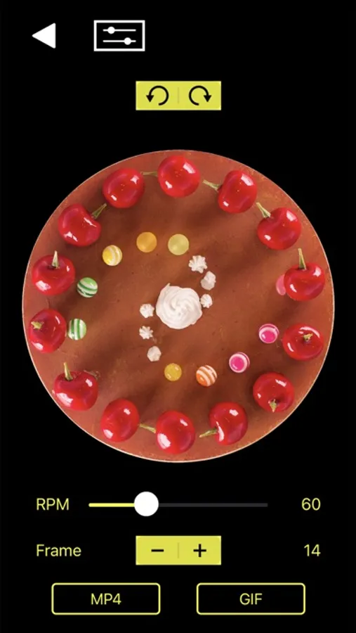 “PhenakistoScope” can rotate a disk-shaped animation. You can shoot a disk image or select it from Photo albums, adjust the number of frames and speed, and export it to a movie.