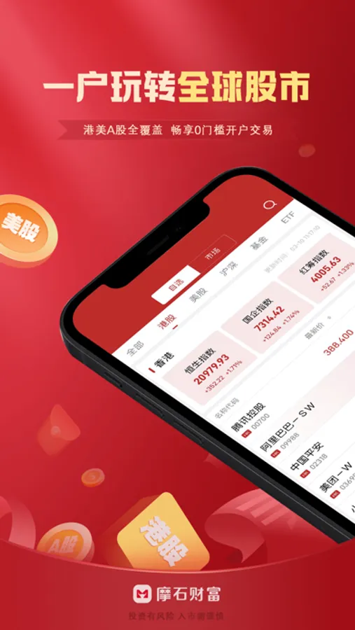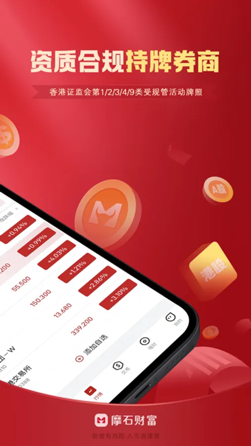 使用摩石财富App,您可掌握快速齐全的全球股市实时行情,告别延迟,享受毫秒级交易体验。同时配合串流报价,精选股市热点资讯,您可准确掌握投资机会。平台汇聚全球优质资产,让您真正实现开一户即可投资全球的优质体验。