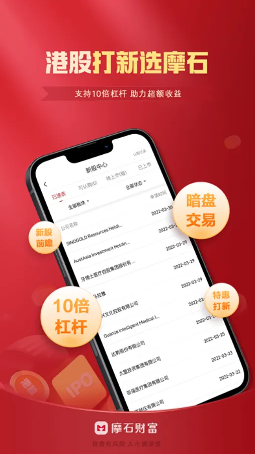 摩石财富App是摩石证券(中央编号:AXT242)旗下的一站式交易平台,以专业的金融经验为依托,融合先进的科技技术,为客户打造集创新、安全、效率于一体的交易系统,提供线上开户和交易等多元化金融服务,是您随身理财好帮手。