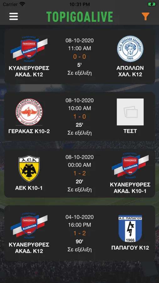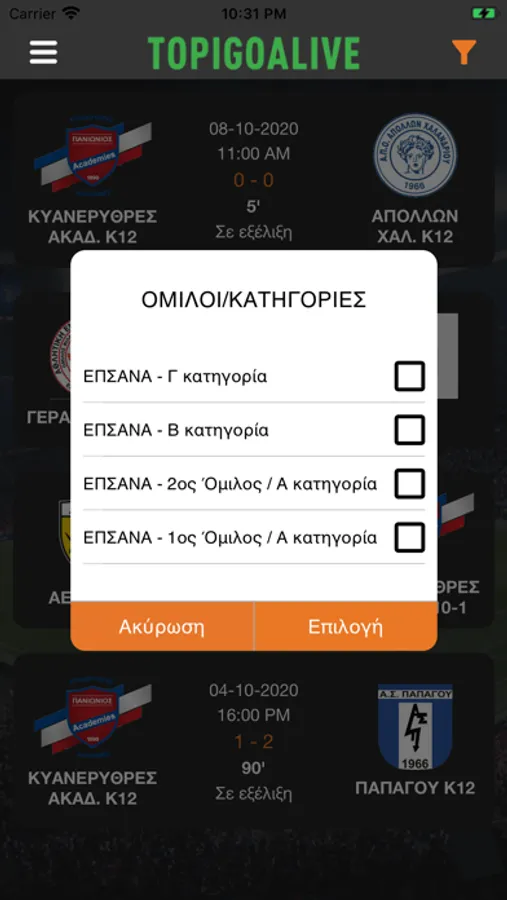 Users can select soccer groups and filtering matches that are showing in the main page.