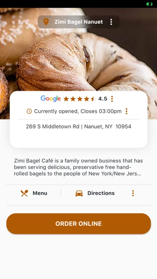Zimi Bagel Café app has many different functions. It contains an online ordering link, restaurant images, address and driving directions, store hours, menus, and many other great features.