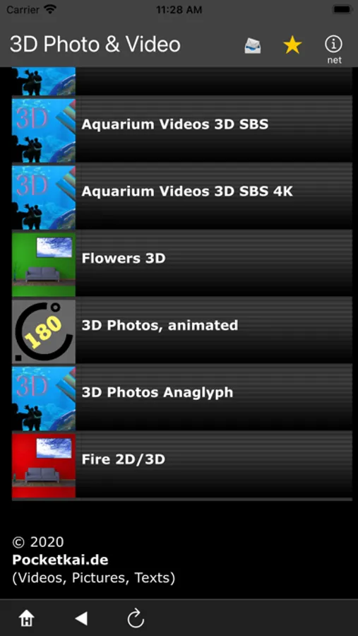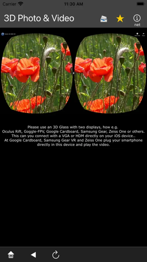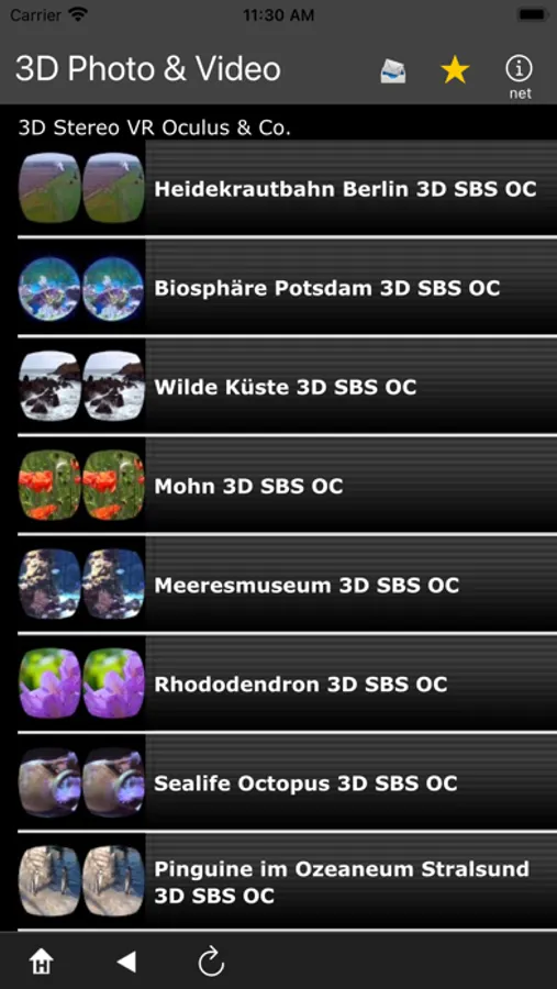 3D content as photo and video. All formats: 3D anaglyph (with red / cyan glasses), as 3D SBS (Side by Side for 3D TV), 3D VR (side by side for VR glasses or cardboard), animated 3D views (wobbly images) without glasses.