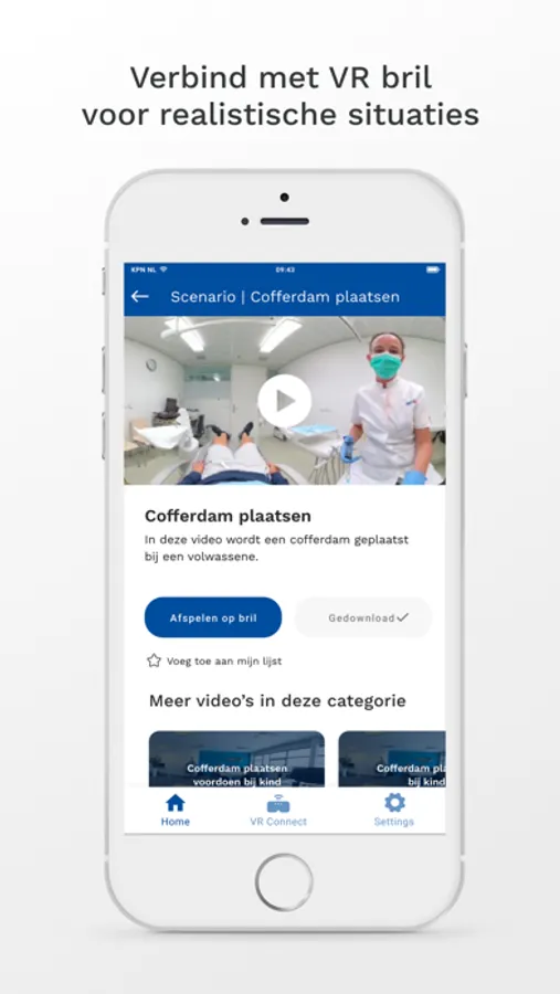 Use the SBT VR app to bring patients virtually step by step into contact with the virtual dentist. Not only Virtual Reality Exposure Therapy is possible, there is also a VR Distraction module. In the Distraction module, patients are virtually distracted. Go to a relaxing location, on vacation or watch your favourite relaxing movie. This puts the patient in an extreme state of rest so that the dentist can do his important job.