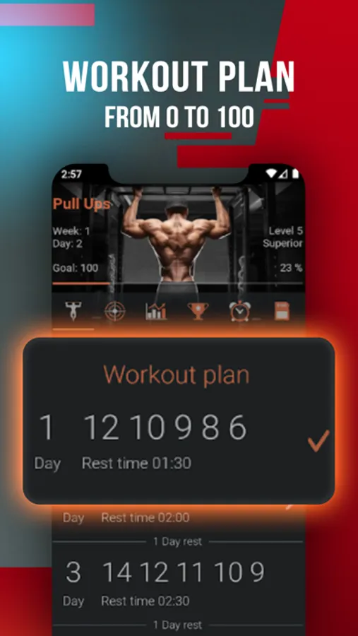 Get ready to surpass your physical capabilities, gain muscles and incredible strength. Gain muscles, build massive back and strong arms! Ultimate workout from 0 to 100 pull-ups!