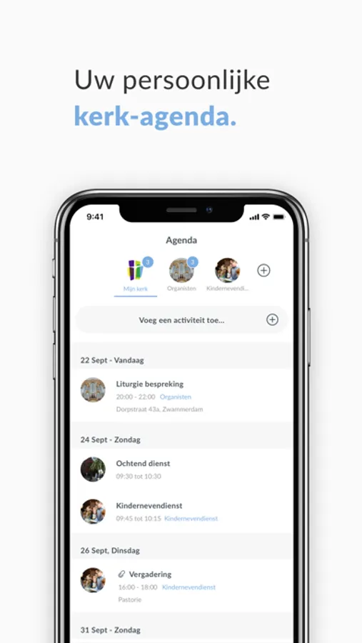 Dankzij onze unieke groepenstructuur helpen wij kerken beter te communiceren. Met de hele gemeenschap, maar ook onderling. U kunt zelf groepen toevoegen en mensen daarvoor uitnodigen. Een slimme timeline zorgt er voor dat iedere gebruiker persoonlijke en relevante informatie ziet.
