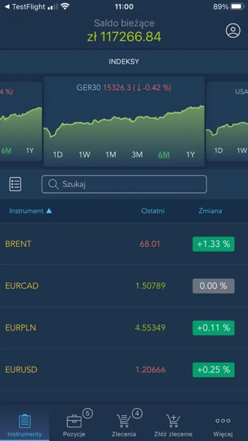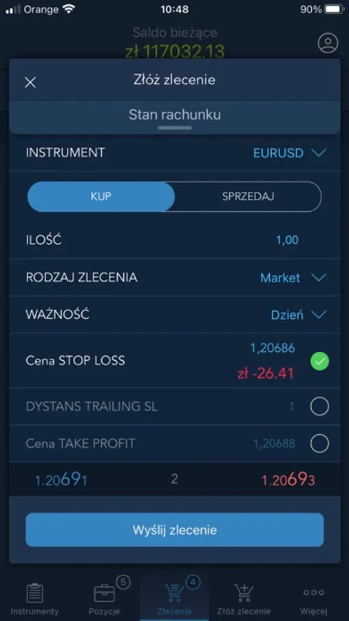 - dostęp do wszystkich rodzajów zleceń: Market, Limit, OCO, Stop Loss, Take Profit
