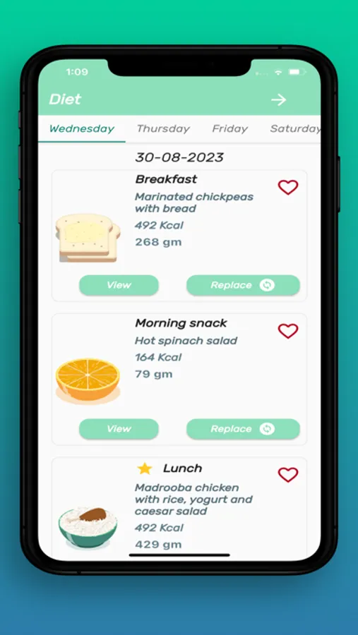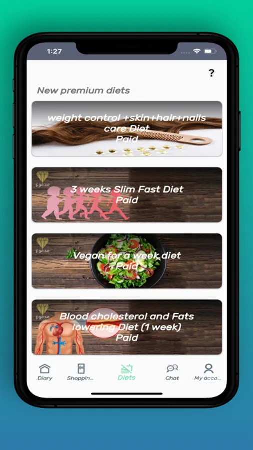 The application offers weight-related diets:
