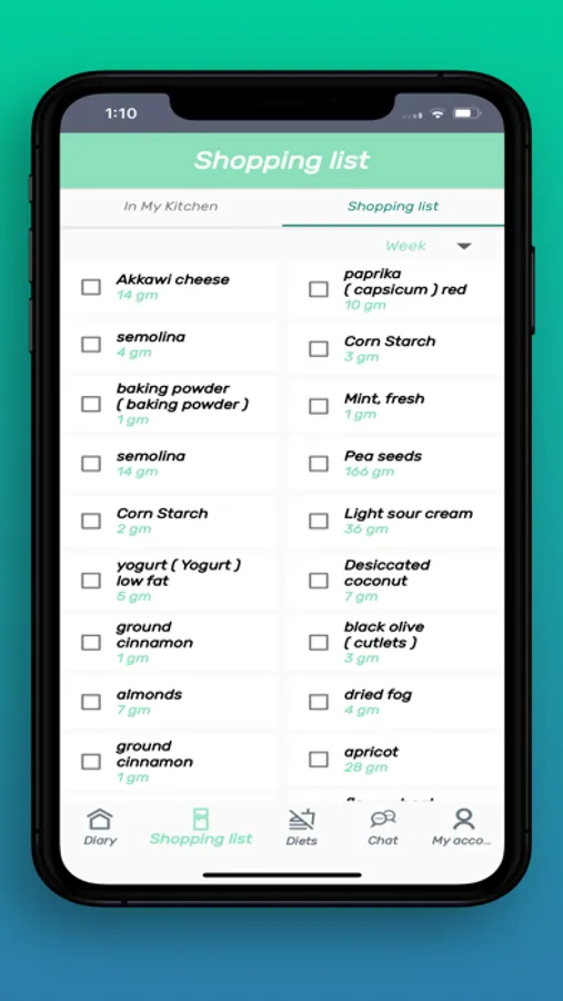 The application provides a shopping list for all suggested meals so you can buy all the ingredients at once when you go shopping.