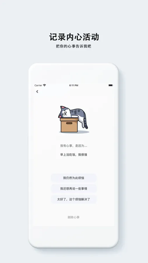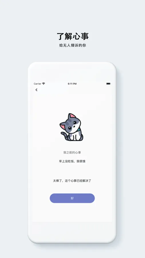 当你有心事和烦恼的时候,如果没有人可以诉说。你可以把你的心事告诉小猫咪,它会帮你分担。