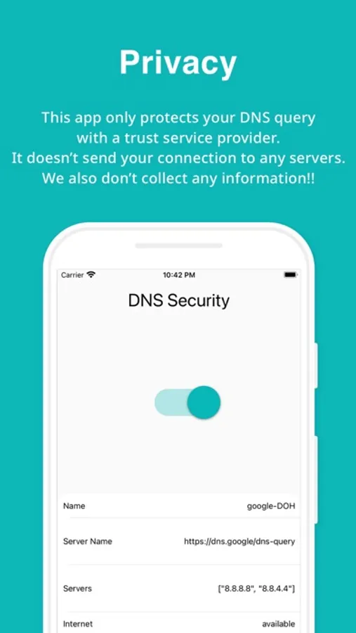 Privacy-Focused: Our app only secures your DNS queries through trusted service providers and does not route any other connections through external servers. We do not collect any user information.