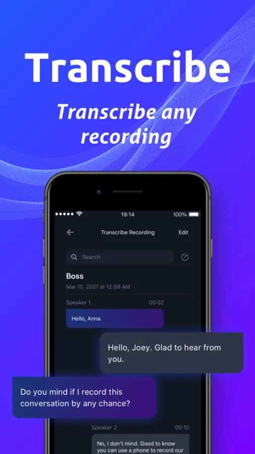 - Automated voice to text transcription: turn your call recordings into text with just one tap.Rename records if you need to;