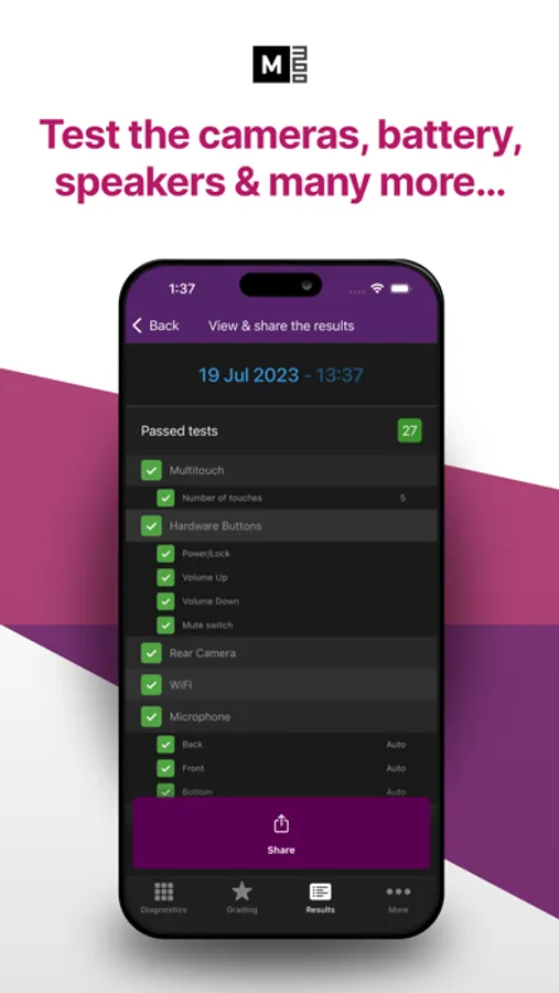 You can use M360 Diagnostics to test most components of a mobile phone or tablet, to check if everything is working well.