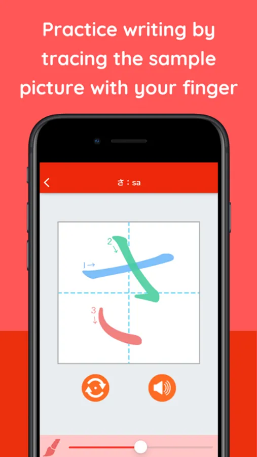 You can learn the stroke order by tracing the sample picture with your finger or pen.