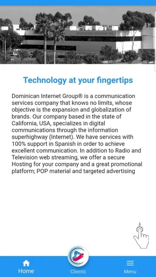Dominican Internet Group® es una empresa de servicios de comunicación que no conoce límites, cuyo objetivo es la expansión y globalización de marcas. Nuestra empresa con sede en el estado de California, EUA, se especializa en comunicaciones digitales a través de la supercarretera de la información (Internet). Contamos con servicios con soporte 100% en español para poder lograr una excelente comunicación. Además de Radio y Televisión web streaming, ofrecemos un Hosting seguro para su empresa y una gran plataforma promocional; material POP y publicidad objetiva.