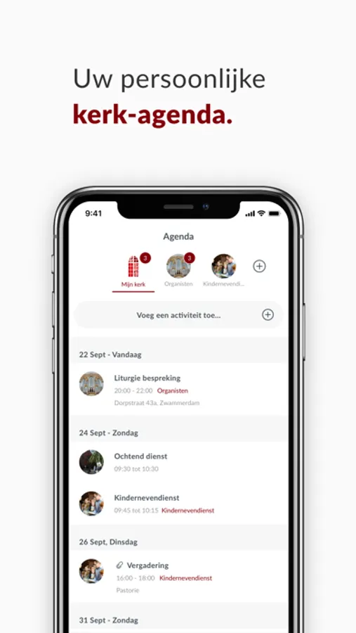 Dankzij onze unieke groepenstructuur helpen wij kerken beter te communiceren. Met de hele gemeenschap, maar ook onderling. U kunt zelf groepen toevoegen en mensen daarvoor uitnodigen. Een slimme timeline zorgt er voor dat iedere gebruiker persoonlijke en relevante informatie ziet.