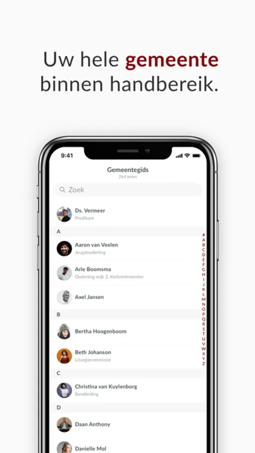 Wie zoekt er tegenwoordig nog een telefoonnummer op in het telefoonboek? Vrijwel niemand! Dankzij de gemeentegids feature is iedereen binnen uw kerkelijke gemeente terug te vinden. Snel berichten sturen, naar een adres navigeren of zien wat iemands rol in de kerk is? Met de digitale gemeentegids wordt het makkelijk.