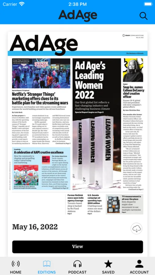 The Ad Age app is free to download, with a small sampling of articles. Subscribers get full access.