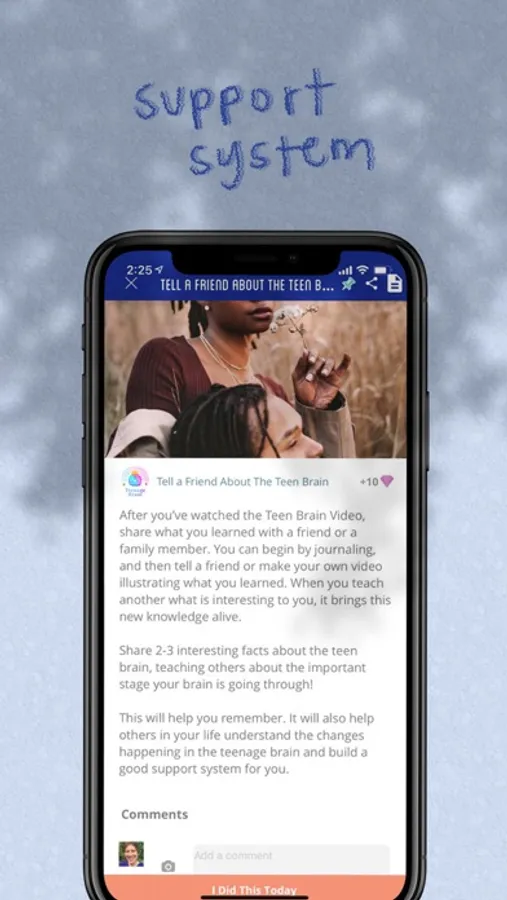 The Inner Strength app is multi-layered. By bringing in a deep-time developmental narrative covering millions of years, teens learn how to see that their experience is the result of ongoing growth and adaptation. They expand their horizons and discover that aspects of their experience are simply part of normal brain development.