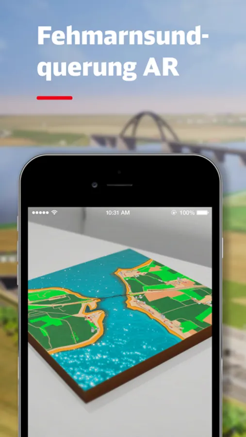 Erleben Sie schon heute virtuell die neue Verbindung am Fehmarnsund zwischen Fehmarn und dem Festland mit der Augmented Reality-basierten Fehmarnsundquerung AR - App. Tauchen Sie ab in den neuen Absenktunnel für den Schienen- und Straßenverkehr. Der Tunnel wird gemeinsam von der DB Netz AG, dem Land Schleswig-Holstein und der DEGES realisiert. Mit dem Tunnel wird Fehmarn nachhaltig und zukunftsfähig an das deutsche Festland angebunden und eine durchgehend leistungsfähige Anbindung für die Feste Fehmarnbeltquerung – und damit für die europäische Nord-Süd-Achse - gewährleistet. Straßen- und Schienenverkehr werden zukünftig durch den Fehmarnsundtunnel geleitet. So kommen Sie bei jedem Wind und Wetter sicher an. Entlang der Verkehrsachse werden modernste Lärmschutzanlagen gebaut. Sehen Sie sich die Umgebung am Sund in der Zukunft an und besuchen Sie die Fehmarnsundbrücke als Wahrzeichen der Region Ostholstein. Im Zuge der Planung wird die Brücke für den langsamen Verkehr, sowie für Radfahrer und Fußgänger erhalten bleiben. Die App macht es möglich, dass Sie mit dem Bildschirm auf Straßen- und Gleis-Niveau abtauchen – und sogar einen Blick in den Absenktunnel werfen können. Viel Spaß dabei!