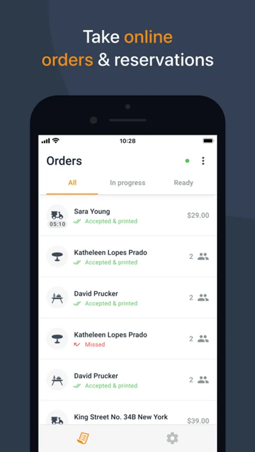 *Manage your orders with 3 views: all, in progress, ready;