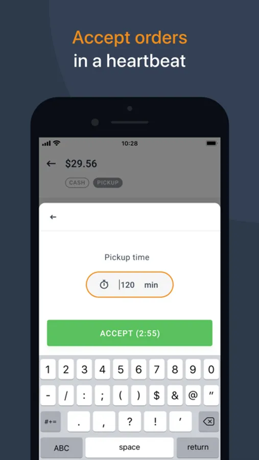 When you accept an asap order you are required to enter how long it will take to fulfill it. Your client will be notified immediately that the order has been accepted, together with the estimated time for pickup/delivery.