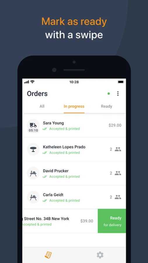 *Mark an order as ready with a simple swipe;
