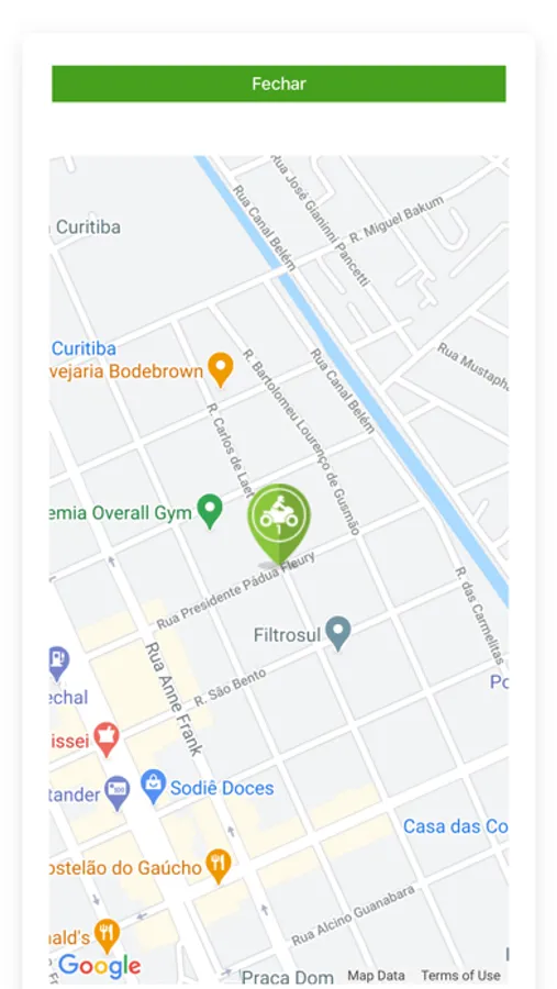 Aplicativo para rastreamento de veículos com recursos de relatório em tela, exibição no mapa, recebimento de alertas, bloqueio e desbloqueio.