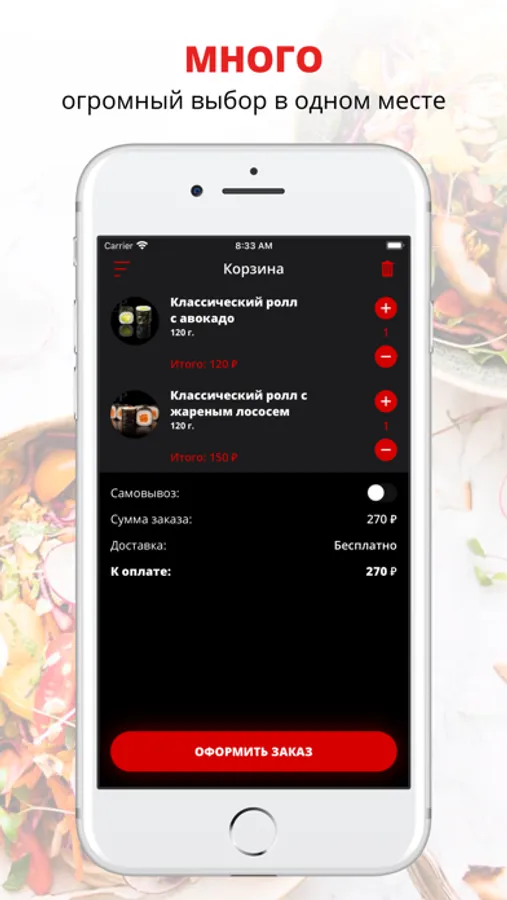 Заказывайте ваши любимые блюда у нас, и Вы останетесь довольны качеством сервиса. У нас работают лучшие повара, а курьеры приятно порадуют вежливостью и быстрой доставкой.