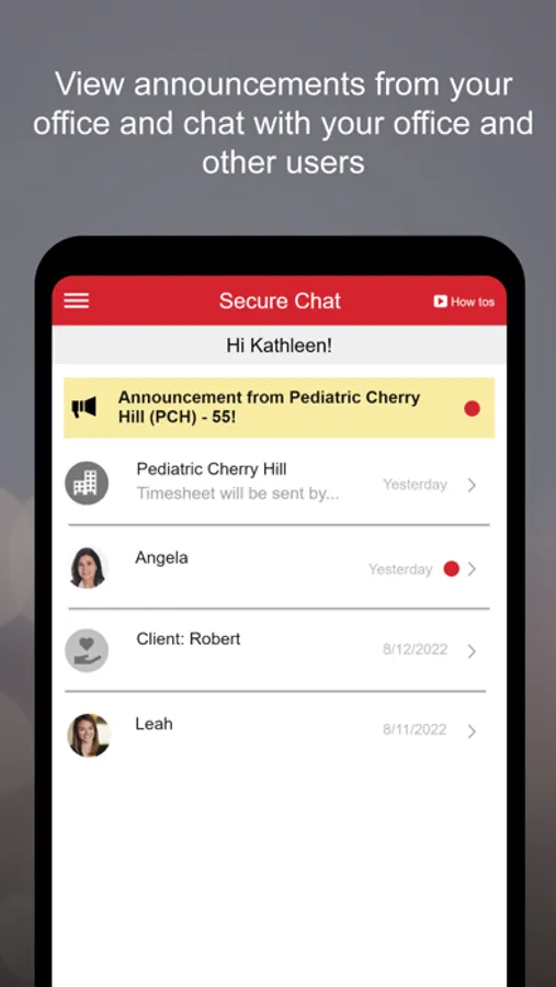 Connect to other BAYADA employees with private phone to phone chat. Need a more collaborative approach? Use Group Chat to chat with multiple BAYADA employees at once, including both caregivers and office staff!