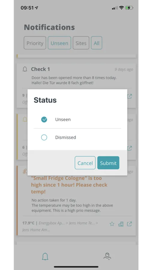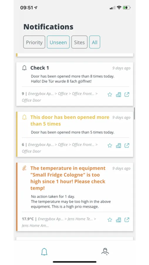 Automate your operations with Energybox’s real-time notification app! Easily log in with your Energybox platform credentials to receive important push notifications right to your smartphone or tablet to easily manage your multi-site operations at any time, and from anywhere. Gain the ability to easily identify which site, space, equipment, or sensor that triggered the notification. Receive and dismiss notifications with the option of advanced dismissal and commenting on any notification as well as the ability to share and forward them to any contact on your device. Easily view the 7 day history of Temperature, Humidity, Energy or Door Status values before a notification. Sort all notifications by priority, status, and sites with the ability to create starred/favorite notifications and directly open notifications context in the platform from your mobile device. Be in total control of your operations. Enjoy Automation.