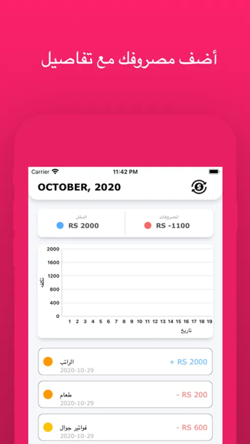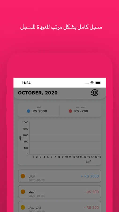 يساعدك في ادارة اموالك وتحكم بها وتدارك مصروفات الزائدة بسهولة مما يتيح لك تحكم بها