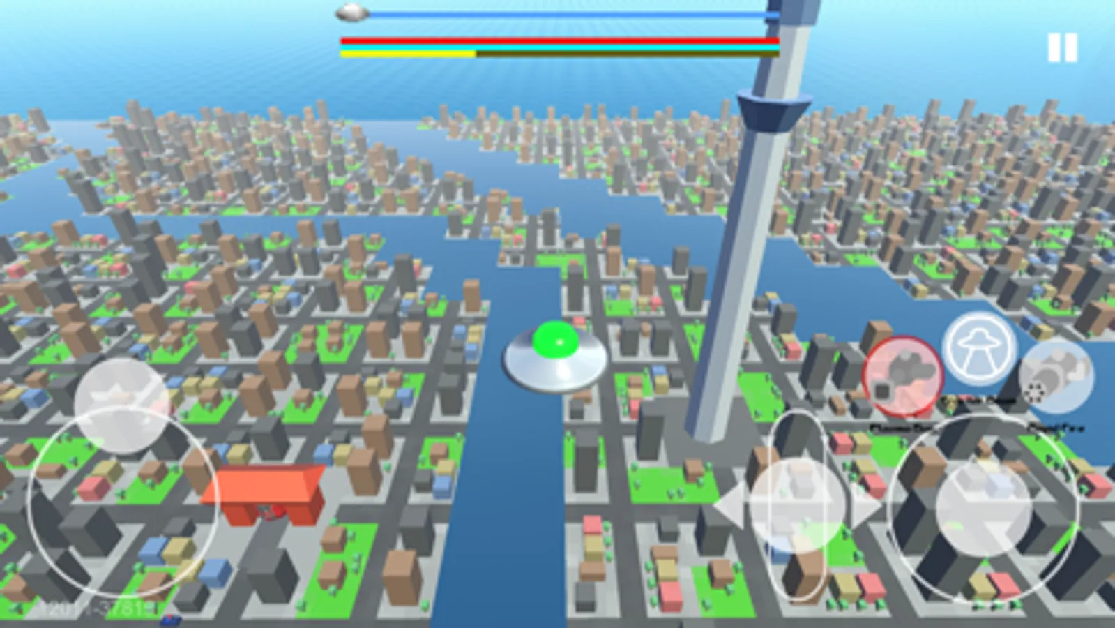 Help the aliens invade Earth in this procedurally-generated 3D shooter game. Featuring fully destructible cityscapes and a great variety of destructive and sometimes comical weapons. Visit (and destroy) the cities of future Earth and Mars colony. Customize your UFO and character with a wide choice of ships, wraps, weapons and character accessories, all available for free by completing in-game missions.