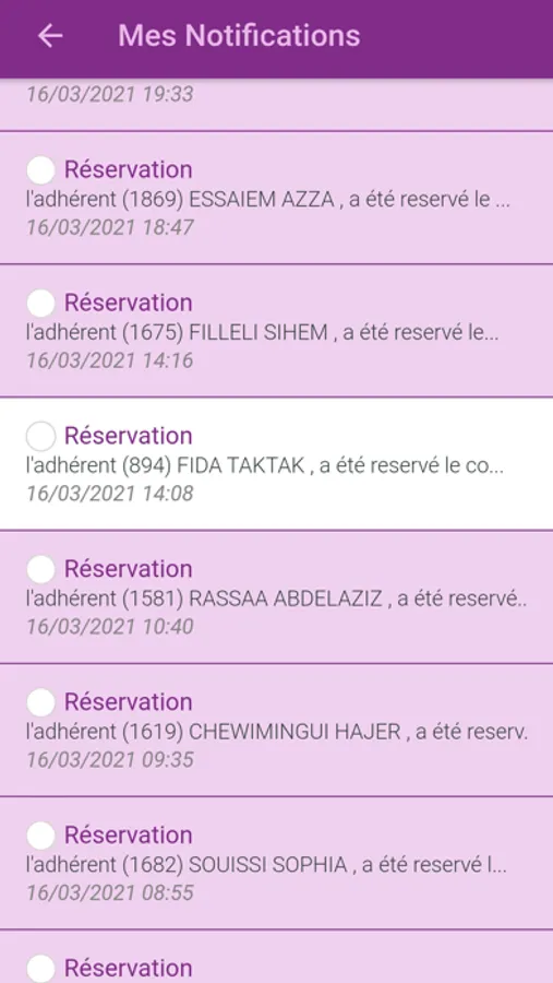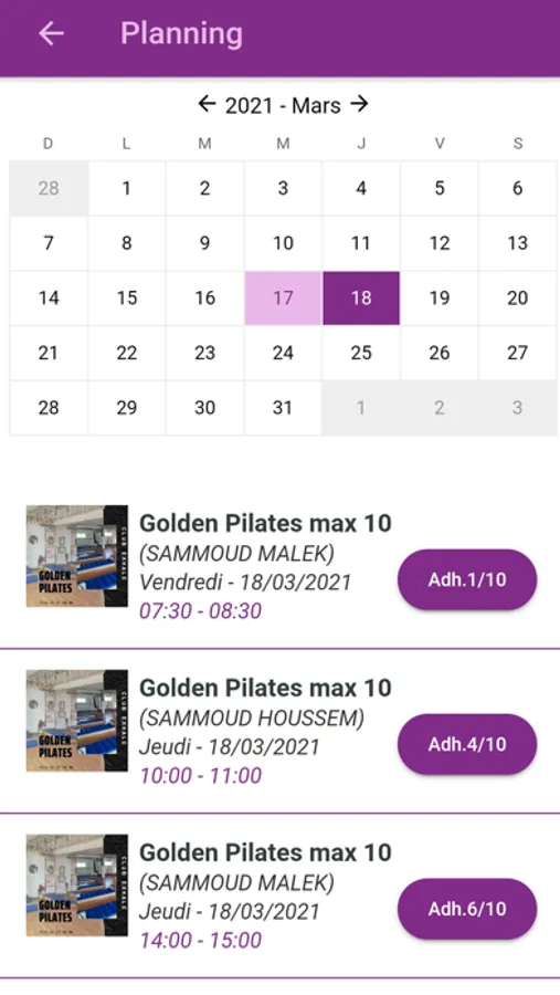 * Suivre le planning des cours et des réservations avec des notifications instantanées,