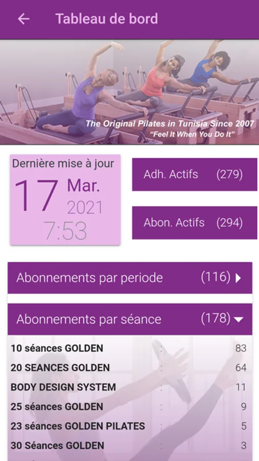 * Consulter le tableau de bord qui englobe les réservations encours les abonnements actifs et ses crédits actuels,