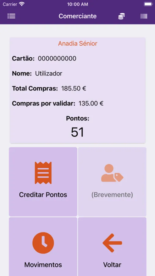 Se é comerciante, esta App permite-lhe validar o cartão “Sentir Anadia”, atribuir pontos nas compras efetuadas no seu estabelecimento e ainda consultar em detalhe os pontos atribuídos.