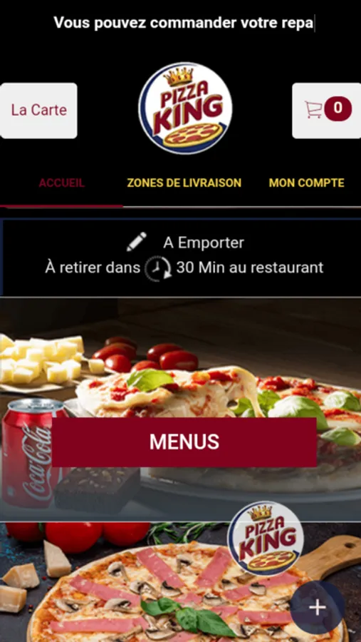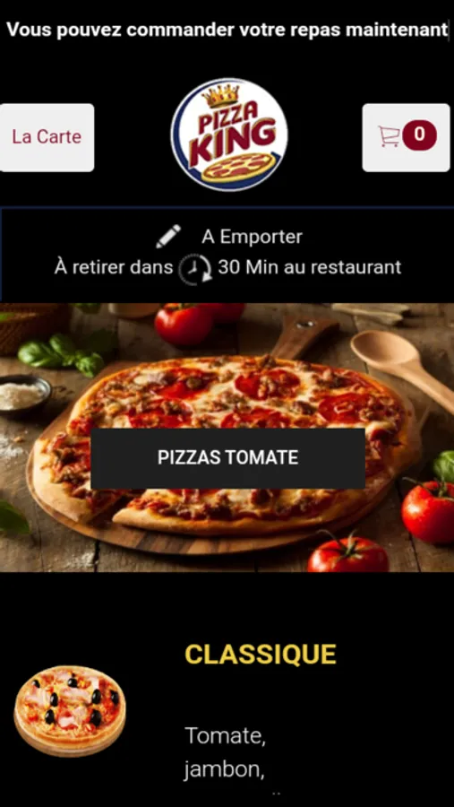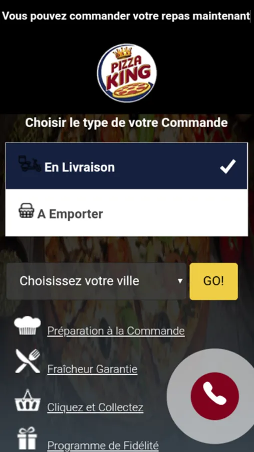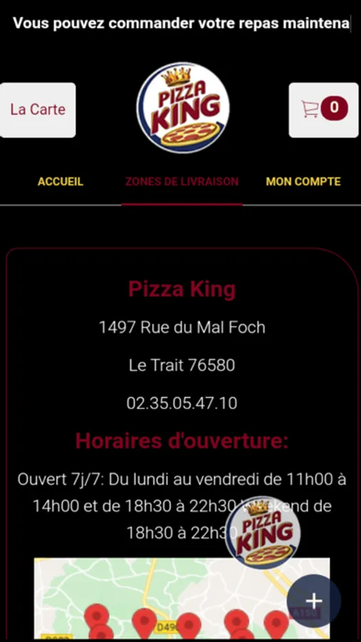 L'application Pizza King vous permet de commander en ligne ou par téléphone via votre application. Vous pouvez consulter notre carte et choisir vos produits.